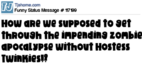 - # 117217 now with Hostess going out of business, we wont have any twinkies to eat when the zombie apocalypse happens