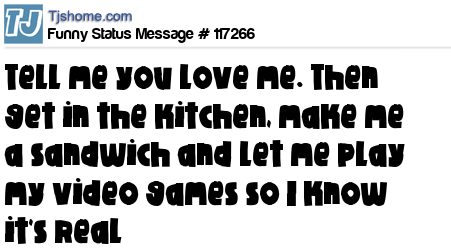 X says Tell me you love me. Then get in the kitchen, make me a sandwich and let me play my video games so I know it's real