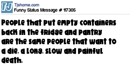X says people that put empty containers back in the fridge and pantry are the same people that want to a die, a long, slow and painful death.
