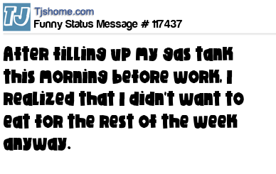 - # 115048 As I was filling up my gas tank I realized I didn't want to eat this week anyways.