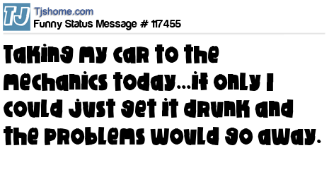 X says Taking my car to the mechanics today...if only I could just get it drunk and the problems would go away.