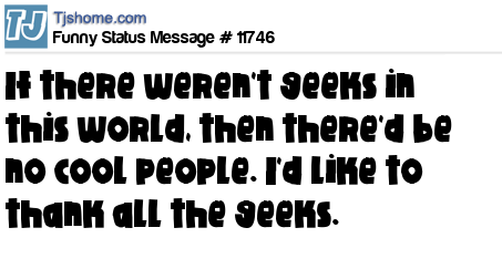 X says If there weren't geeks in this world, then there'd be no cool people. I'd like to thank all the geeks.