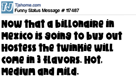 X Now that a billonaire in Mexico is going to buy out Hostess the twinkie will come in 3 flavors. Hot, Medium and mild.
