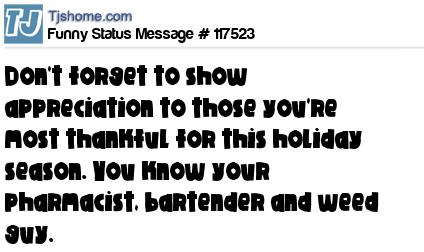 X says Don't forget to show appreciation to those you're most thankful for this holiday season. You know your pharmacist, bartender and weed guy.