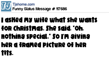 X is I asked my wife what she wants for Christmas. She said, "Oh, nothing special." So I'm giving her a framed picture of her t!ts.