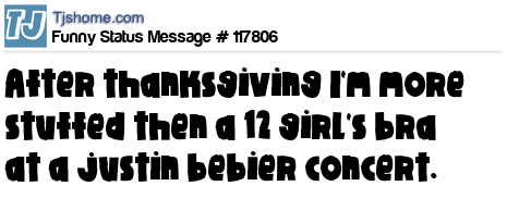X is after thanksgiving I'm more stuffed then a 12 girl's bra at a justin bebier concert.