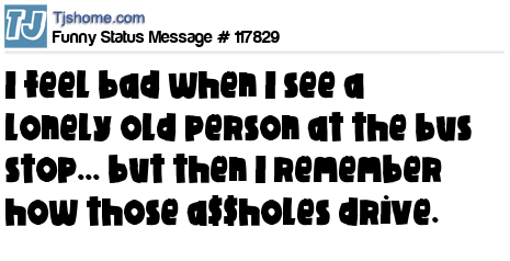 X says i feel bad when I see a lonely old person at the bus stop... but then I remember how those a$$holes drive.
