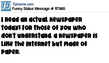 X I read an actual newspaper today! For those of you who don't understand, a newspaper is like the Internet but made of paper.
