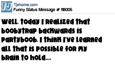 X Well, today I realized that boobytrap backwards is partyboob, I think I've learned all that is possible for my brain to hold....