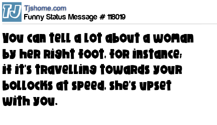 X You can tell a lot about a woman by her right foot, for instance; if it's travelling towards your bollocks at speed, she's upset with you.