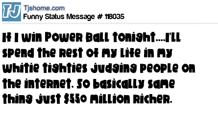 X says If I win Power Ball tonight....I'll spend the rest of my life in my whitie tighties judging people on the internet. So basically same thing just $550 million richer.