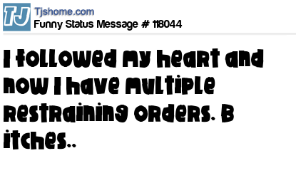 X says I followed my heart and now I have multiple restraining orders. B itches..