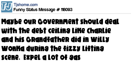X Maybe our Government should deal with the debt ceiling like Charlie and his Grandfather did in Willy Wonka during the fizzy lifting scene. Expel a lot of gas
