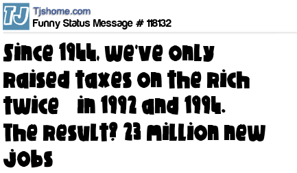 X is Since 1944, we've only raised taxes on the rich twice—in 1992 and 1994. The result? 23 million new jobs