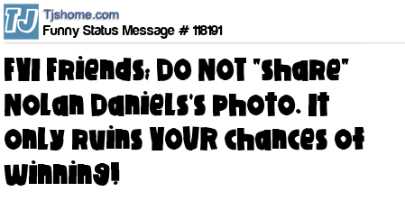 X says FYI Friends; DO NOT "share" Nolan Daniels's photo. It only ruins YOUR chances of winning!