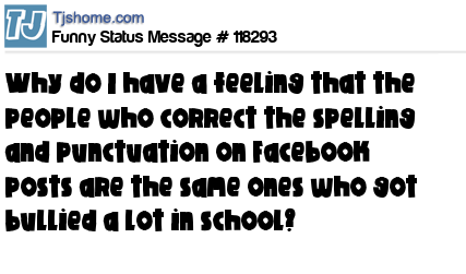 X says Why do I have a feeling that the people who correct the spelling and punctuation on Facebook posts are the same ones who got bullied a lot in school?
