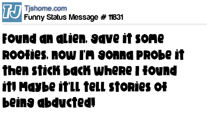 X found an alien, gave it some roofies, now I'm gonna probe it then stick back where I found it! Maybe it'll tell stories of being abducted!