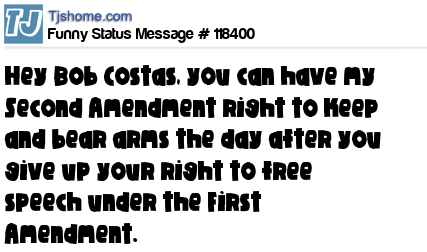 X says Hey Bob Costas, you can have my Second Amendment right to keep and bear arms the day after you give up your right to free speech under the First Amendment.