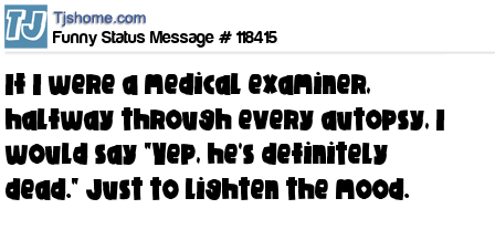 X says If I were a medical examiner, halfway through every autopsy, I would say "Yep, he's definitely dead." Just to lighten the mood.