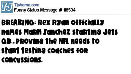 X is BREAKING: Rex Ryan officially names Mark Sanchez starting Jets QB...proving the NFL needs to start testing coaches for concussions.