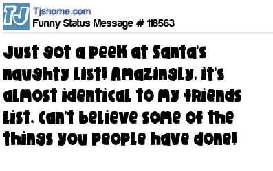 X Just got a peek at Santa's naughty list! Amazingly, it's almost identical to my friends list. Can't believe some of the things you people have done!