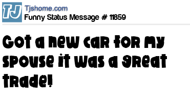 - # 67933 My Wife:"Honey the sales add says the dealership will make it easy for husbands to get a new car for their spouse this weekend!" Me: "Actually that sounds like a pretty good trade."