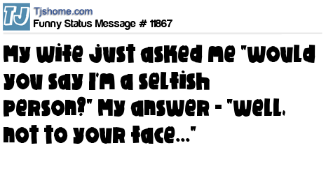 X says My wife just asked me "would you say I'm a selfish person?" My answer - "well, not to your face..."