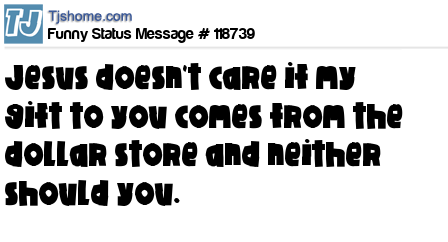 - # 118769 Baby Jesus doesn't care if my gift to you came from the dollar store and neither should you.