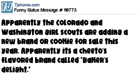 X is Apparently the Colorado and Washington girl scouts are adding a new brand or cookie for sale this year. Apparently its a cheeto's flavored brand called "Baker's delight."