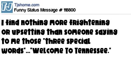 X  I find nothing more frightening or upsetting than someone saying to me those "three special words"..."Welcome To Tennessee."