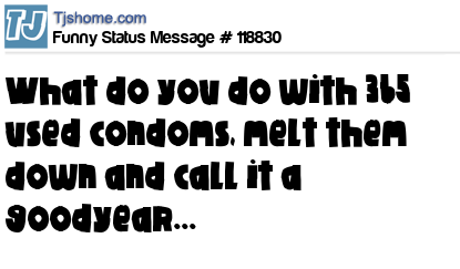 - # 31877 If you had sex for 365 days, kept all the condoms and made a tire out of it, what would you call it? A F*CKING GOODYEAR!