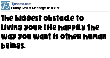 X says The biggest obstacle to living your life happily the way you want is other human beings.