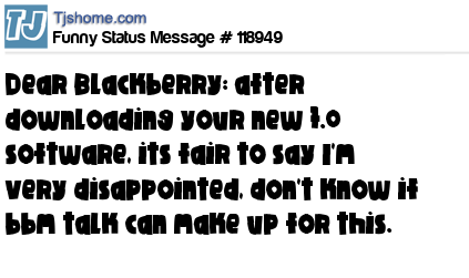X says Dear Blackberry: after downloading your new 7.0 software, its fair to say I'm very disappointed, don't know if bbm talk can make up for this.