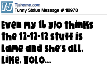 X says even my 16 y/o thinks the 12-12-12 stuff is lame and she's all, like, YOLO...