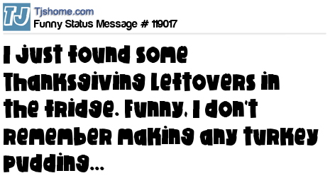 X says I just found some Thanksgiving leftovers in the fridge. Funny, I don't remember making any turkey pudding...