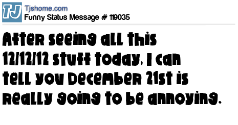 X is After seeing all this 12/12/12 stuff today, I can tell you December 21st is really going to be annoying.