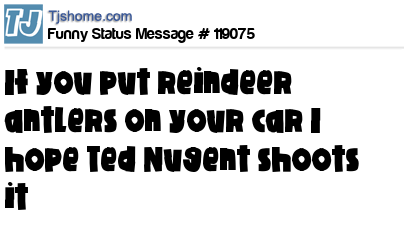 X  If you put reindeer antlers on your car I hope Ted Nugent shoots it