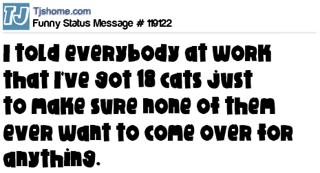 X is I told everybody at work that I've got 18 cats just to make sure none of them ever want to come over for anything.
