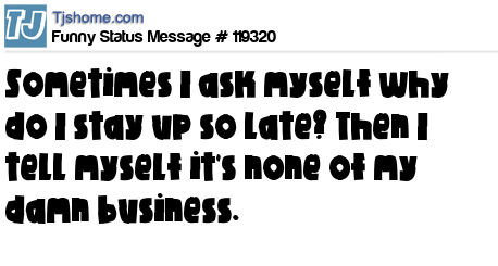 X says Sometimes I ask myself why do I stay up so late? Then I tell myself it's none of my damn business.