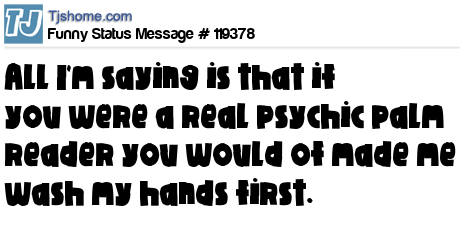 X All I'm saying is that if you were a real psychic palm reader you would of made me wash my hands first.