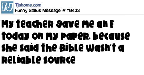 X says My teacher gave me an F today on my paper, because she said the Bible wasn't a reliable source