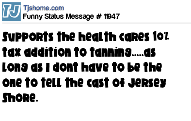 X  supports the health cares 10% tax addition to tanning.....as long as I dont have to be the one to tell the cast of Jersey Shore.