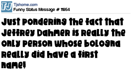 - # 20109 thinking that Jeffrey Dahmer is the only person whose bologna really did have a first name.....