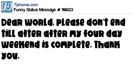 X Dear world, please don't end till after after my four day weekend is complete. Thank you.