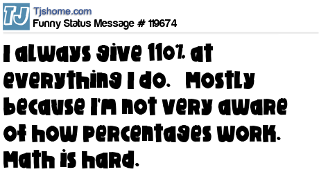 X says I always give 110% at everything I do. Mostly because I'm not very aware of how percentages work. Math is hard.