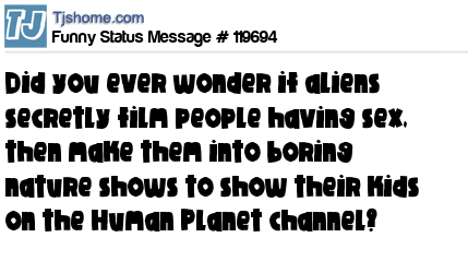 X is Did you ever wonder if aliens secretly film people having sex, then make them into boring nature shows to show their kids on the Human Planet channel?