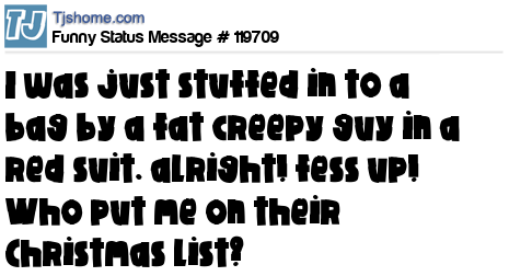 X I was just stuffed in to a bag by a fat creepy guy in a red suit. alright! fess up! Who put me on their Christmas list?