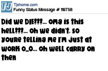 X is Did we DIE???... omg is this hell???... oh we didn't, so youre telling me I'm just at work o_O... oh well carry on then