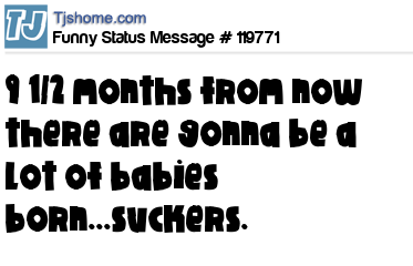 X 9 1/2 months from now there are gonna be a lot of babies born...suckers.