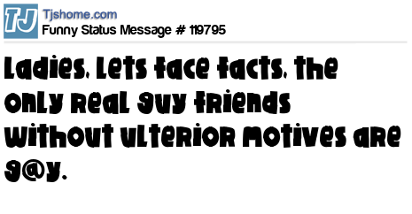 X says Ladies, lets face facts, the only real guy friends without ulterior motives are g@y.